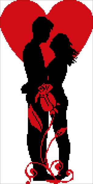 Bonito gráfico de una pareja con un corazón, en negro y rojo...