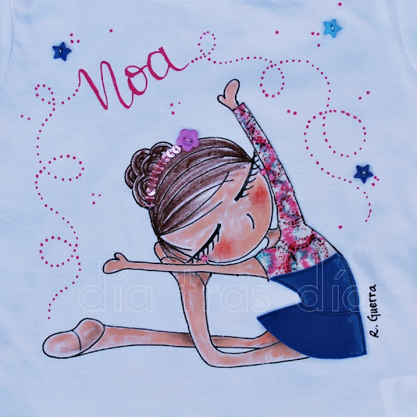 Pero no fue esta la única camiseta de gimnasta que hice. Y es que Tania me dijo que si podría hacer una camiseta igual que la de su hija para Isabel, una amiga de Noa que, al igual que ella, también hace gimnasia.