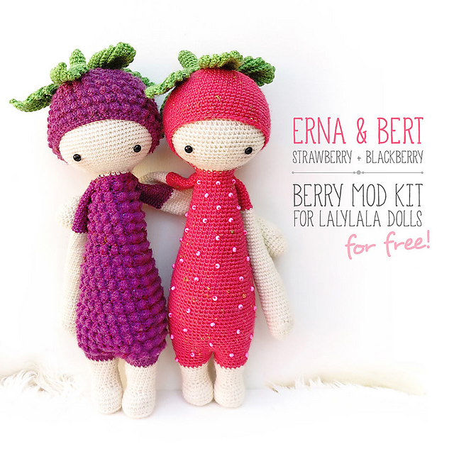 Así que me pareció una buena idea hacer para ella algún nuevo personaje de los que propone Lalylala en sus patrones. Y tenía en mente desde hacía ya tiempo hacer una pareja compuesta por una fresa y una mora, Erna y Bert, por lo que esta me pareció la ocasión perfecta.