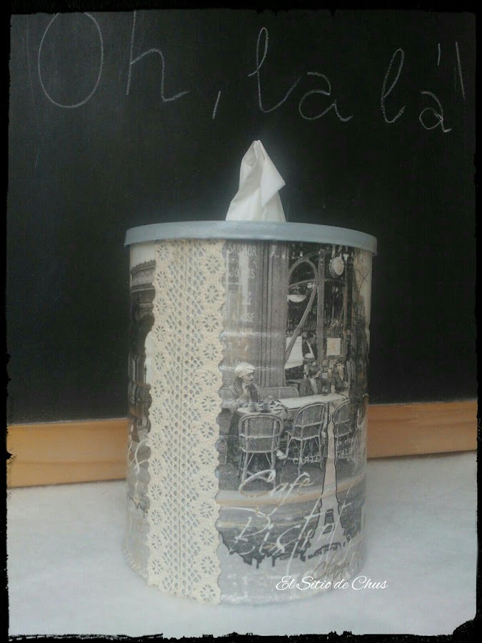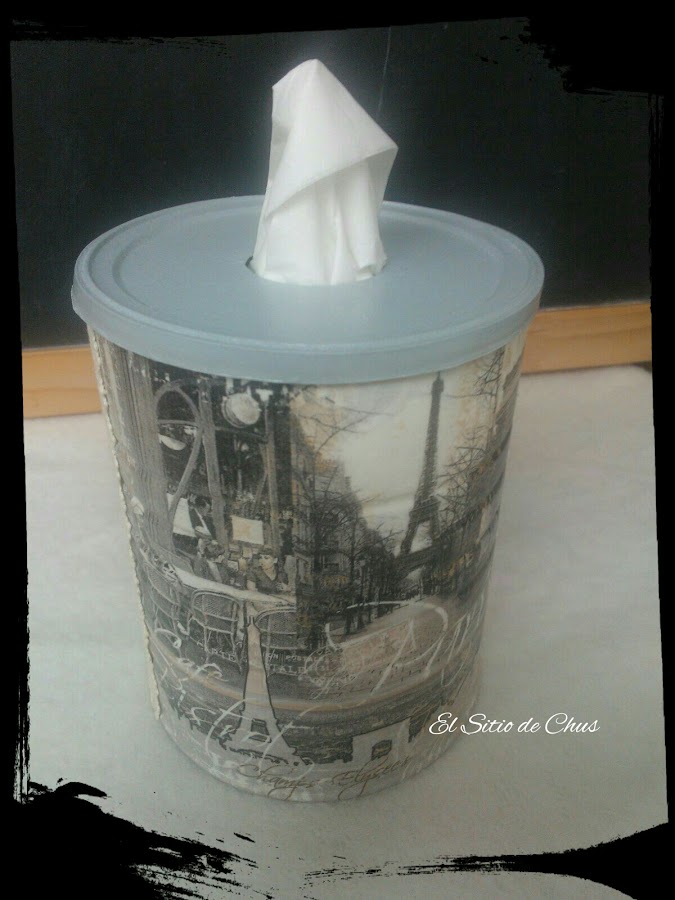 El trabajo que os vengo a enseñar hoy es un reciclado de una lata de leche infantil, tengo un montón de ellas en la terraza, y cuando curioseando en Pinterest vi la idea, me encantó. Transformar la lata en un dispensador de pañuelos me pareció genial!