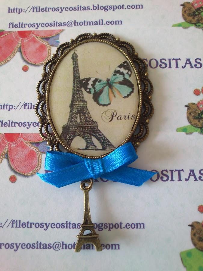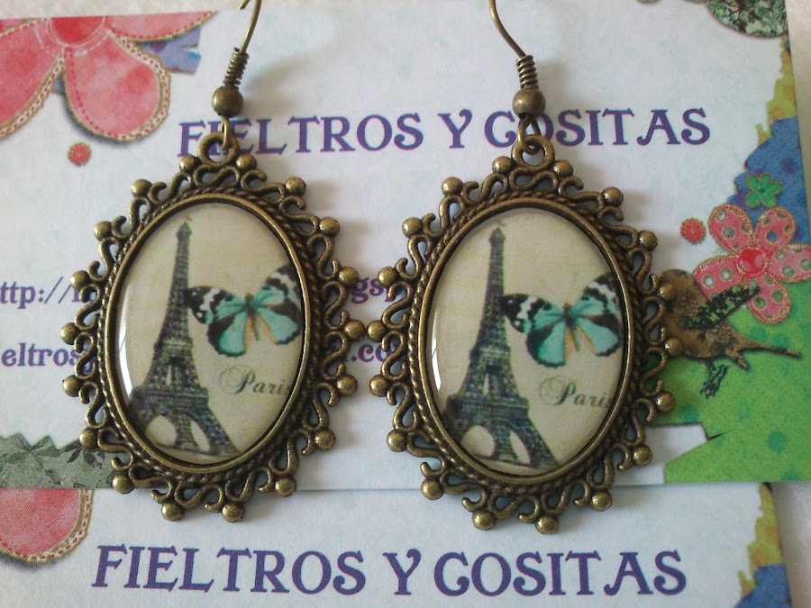 María me encargó un conjunto de pendientes y camafeo con una ilustración de París , me decidí por esta con la mariposa azul que me encanta, espero que a ella también le guste...