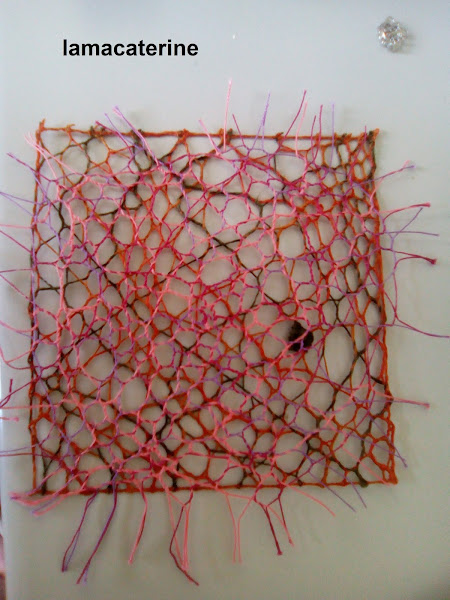 Hice dos muestras de Tul loco, una cuadrada y otra iniciando desde el centro de la pieza. Estos fueron los resultados. Las fotografías no hacen honor a los colores pero mas o menos os podéis hacer una idea. No creáis que este fue el primer resultado...no...aunque no lo creáis deshice mas de una vez e incluso cuando yo lo veía bien al verlo María me dijo que modificara algunos puntos.
