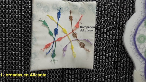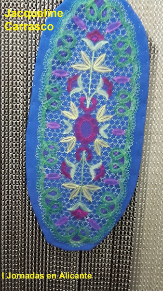 Y digo que tiene alma de poeta porque cuando habla del encaje se le iluminan los ojos. No es solo su forma de transmitir conocimientos que es impresionante, si no que no se limita a enseñar técnica...enseña a desarrollar ideas propias, estimula la imaginación, hablando ella se ven claramente las composiciones de colores, las cosas que se pueden hacer con un punto u otro...