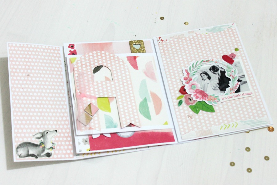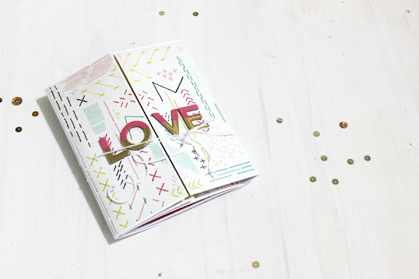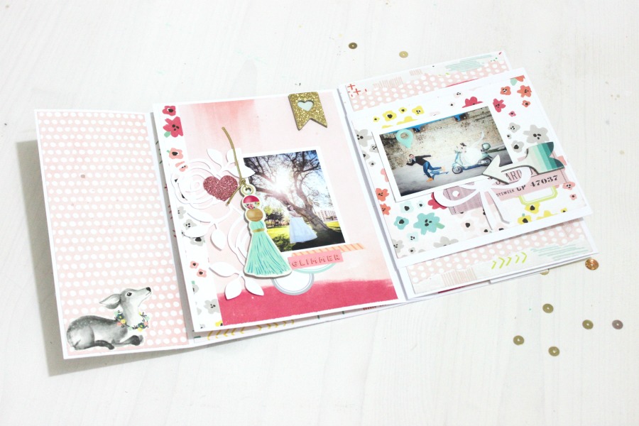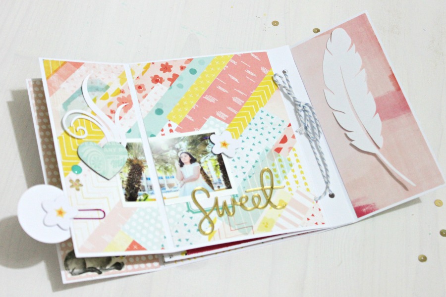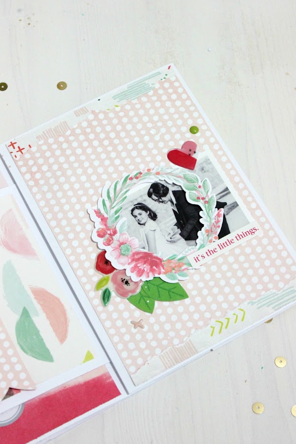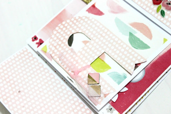 Mi mini se titula LOVE y tiene fotos de la sesión de comunión que, junto con los papeles diseñados por Paige Taylor Evans para Pink Paislee hacen una combinación tan dulce y suavita ...