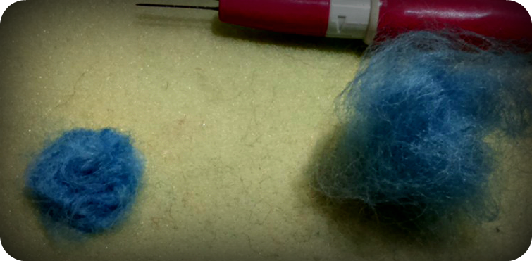 Seleccionamos uno o dos colores que mezclaremos y haremos unas bolas del mismo tamaño, las ponemos sobre nuestra esponja y empezamos a pinchar el fieltro , cada pinchazo en un punto diferente para que el tejido sea lo más homogéneo.