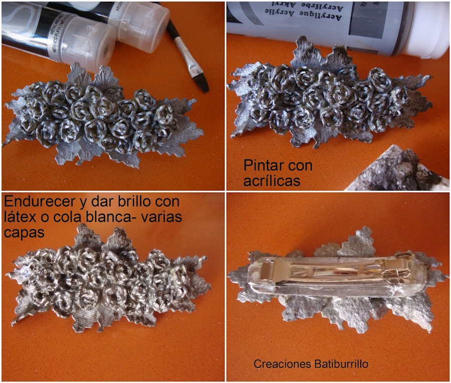 Os presento un pasador de pelo, pero la idea se puede llevar a un broche, un colgante, un adorno de una cajita, lo que queráis.