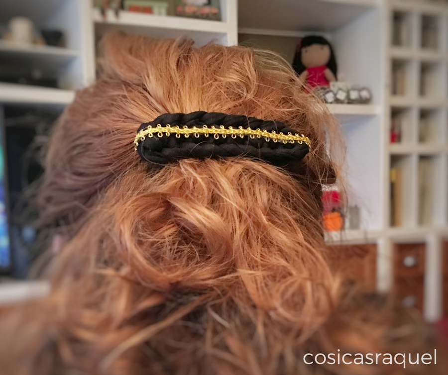 Puedes decorar la tira de trapillo como más te guste y hacerlas de varios colores , las perlas y brillantes aunque eran adhesivas les puse un poco de silicona , el enganche lo puedes coser o pegar directamente con la pistola de silicona .
