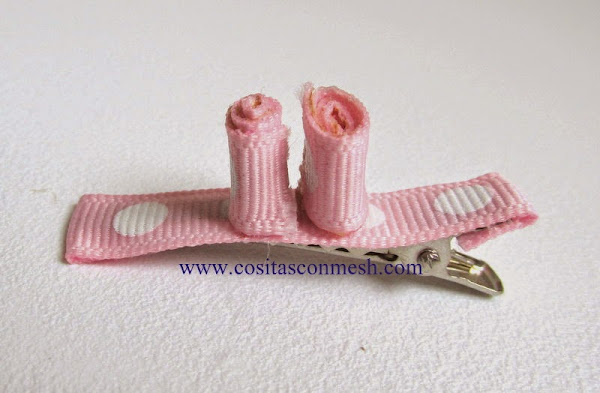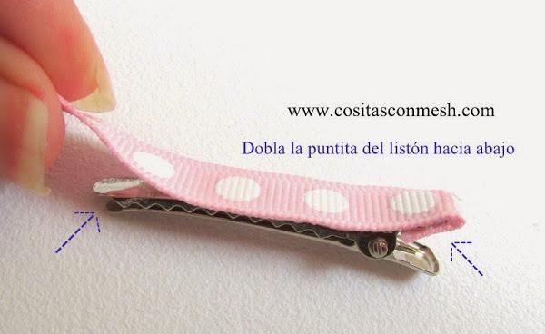 2.-Usaré silicon liquido para pegar el listón sobre el pasador, dobla las puntitas del listón para que quede bien forradito el pasador.