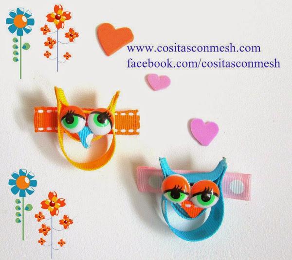 Chicas, los búhos estan muy de moda, y como he recibido correos de ustedes pidiéndome que suba nuevos diseños de moda para hacer bonitos pasadores para el pelo que puedan lucir sus niñas o nietas, espero que te guste esta nueva manualidad, es una de las más fáciles que he realizado, solo tenemos que usar listón de colores que no se deshilache.