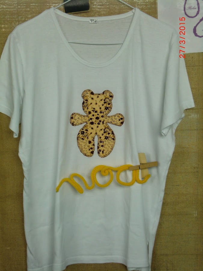 Otra novedad: camisetas de algodón de talla grande con aplicaciones hechas de cabo a rabo por mi, de telas excepto el corazón rosa que es de ganchillo.