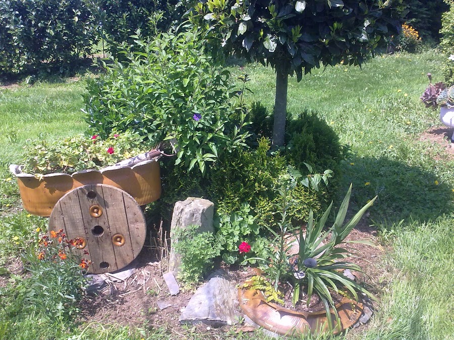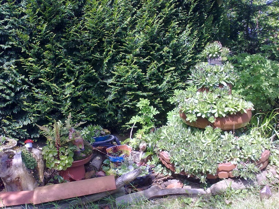 ayer, pasaba con el coche y vi ésto: ufff, era una maceta perfecta para las Sempervivum calcareum !!!!!!!!! dicho y hecho