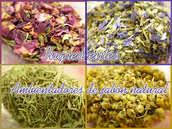 - Pétalos, trozos y hojas de plantas secas como lavanda, malva, rosas, caléndula, romero, tomillo, etc.