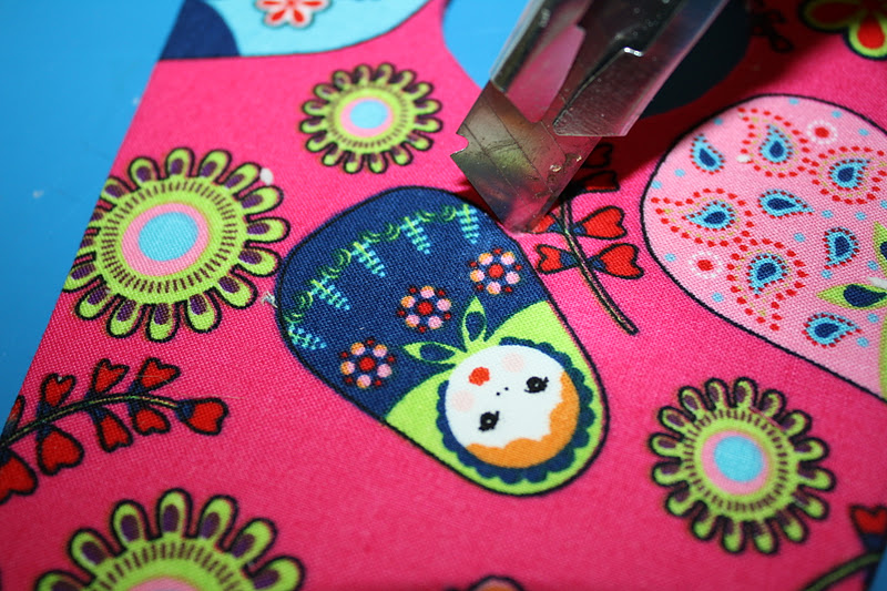 Pegáis la tela. Con cuidadín hacéis el agujerillo en la tela............