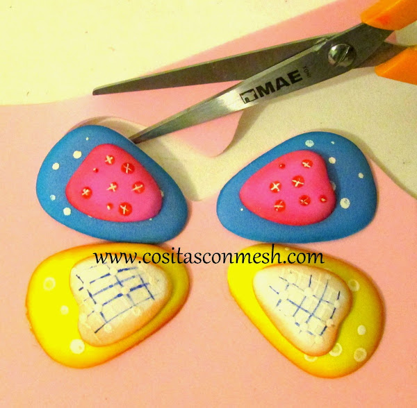 7.-Decoramos los moldes de foamy con plumones y haré puntitos y rayitas con pintura acrílica blanca,roja (usa la pintura que tengas a la mano).