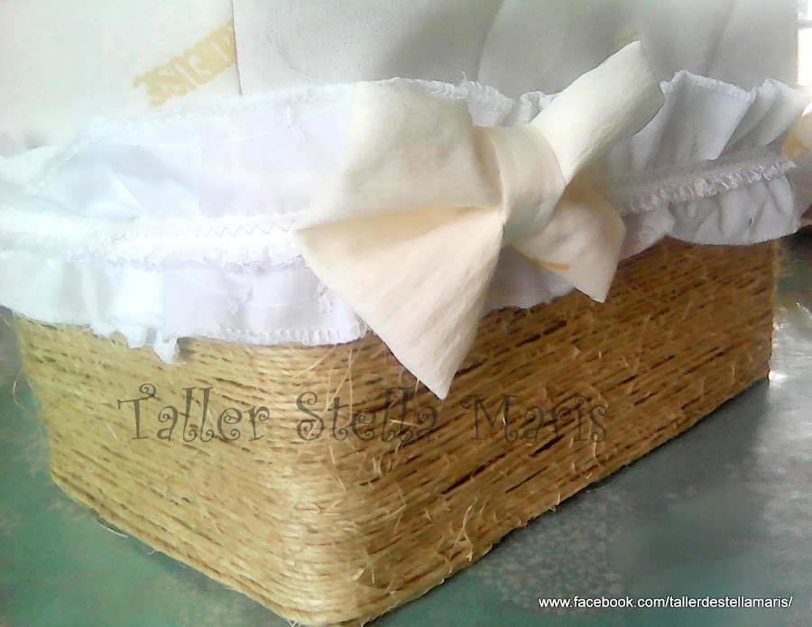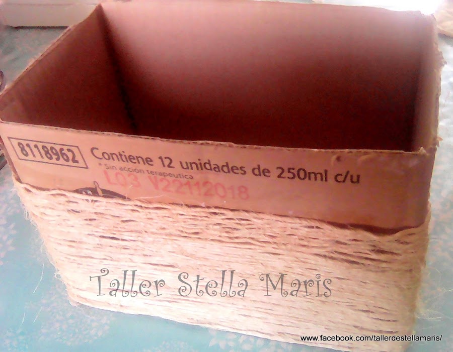 Debería haber forrado la caja con Soga... (muy caro)Por lo cual lo reemplacé por hilo Sisal,