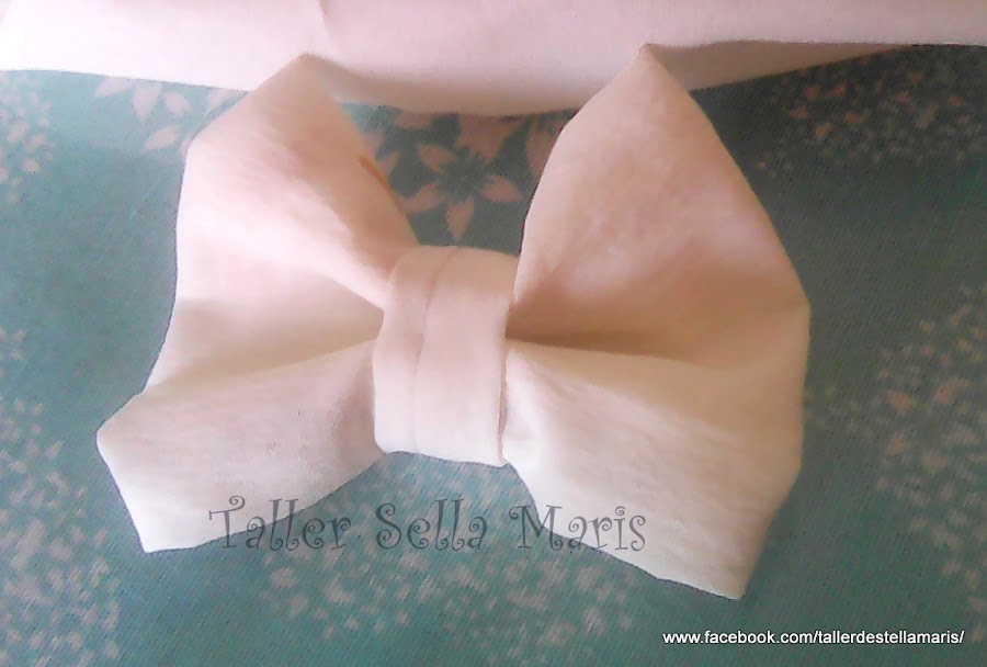Para darle movimiento y quitarle rigidez, le coloqué el moño en una de las esquinas...