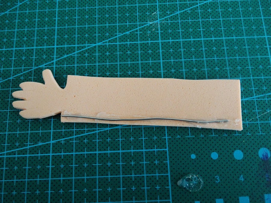 para darle volumen al brazo lo enrollamos en un alambre, esto nos permitirá darle movimiento después.