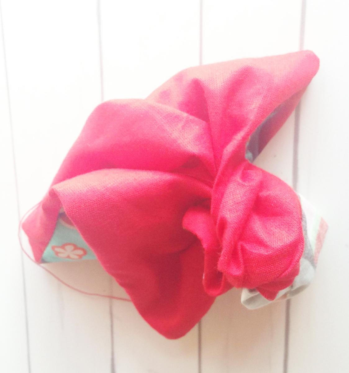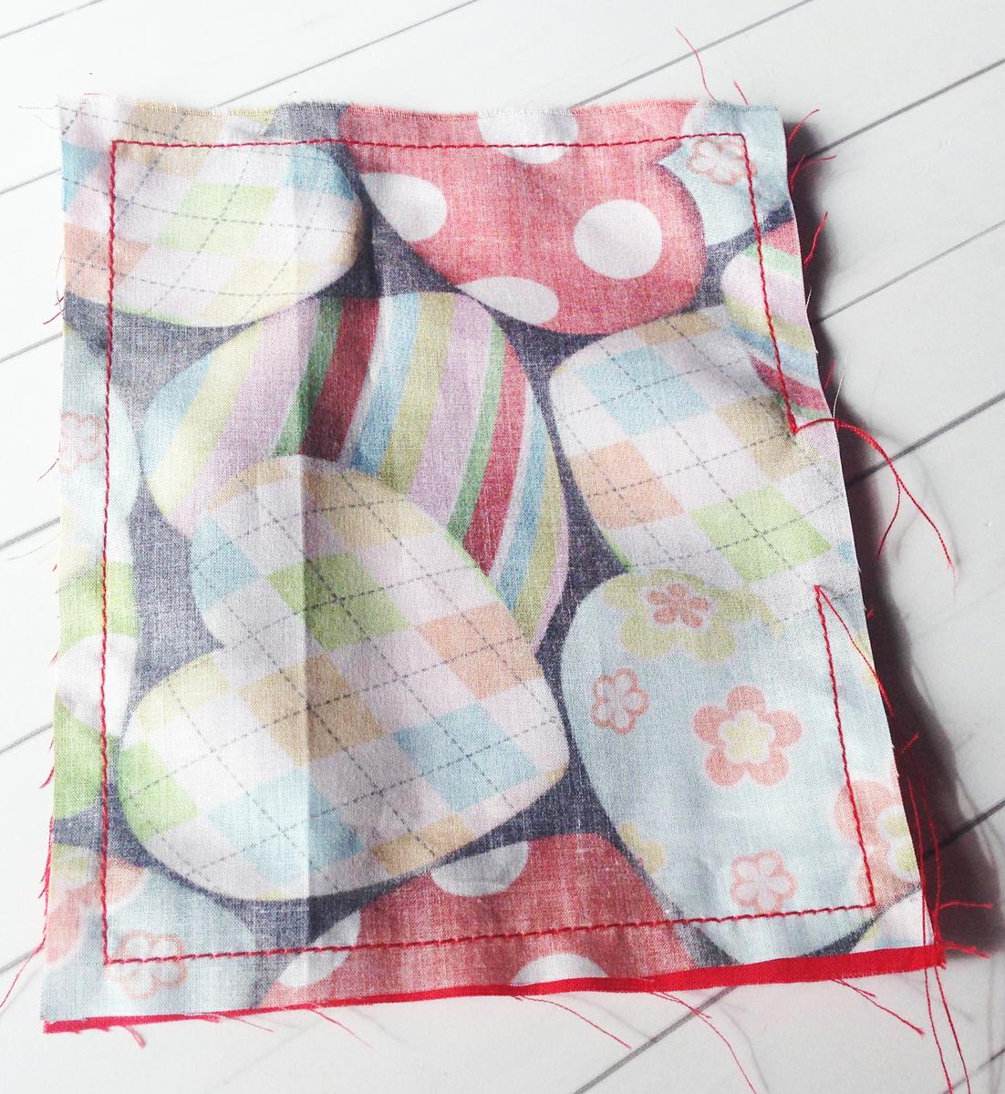 Encaramos las dos telas (derecho contra derecho), cosemos a 1 cm del borde todo alrededor, dejando un trozo para dar la vuelta.