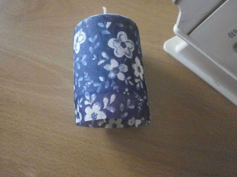 Primero medí el contorno de la vela y el largo, con la vela dentro de la servilleta y corté.