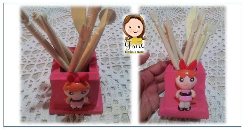 Una chica superpoderosa en Porcelana Fría. Para hacer las caritas, recuerden que aquí, encontrarán consejitos y explicación para elaborarlas.Y con mi Bombón realicé un Portalápices, pero que utilizaré para guardar mis herramientas para trabajar la porcelana fría o estecas.