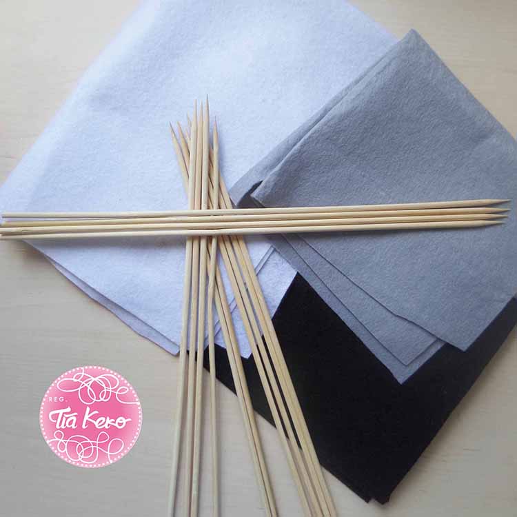 Una vez la flor está terminada, introducimos la brocheta por el centro de la flor para que quede bien sujeta.
