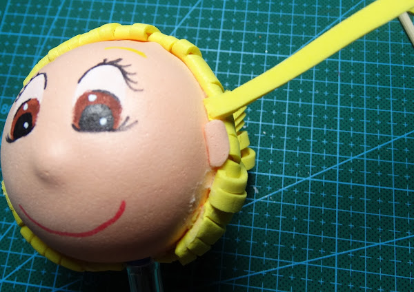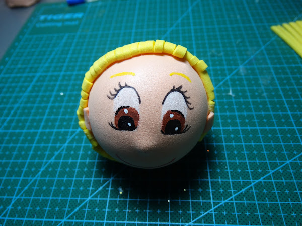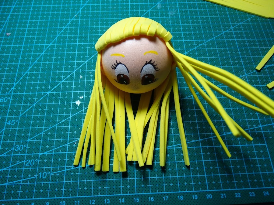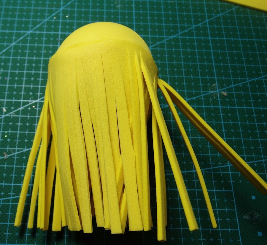 Lo primero que haremos sera cortar dos tiras del color del pelo y hacerle flecos. La largura de las tiras la hacemos midiendo que nos coja todo alrededor de la cabeza.