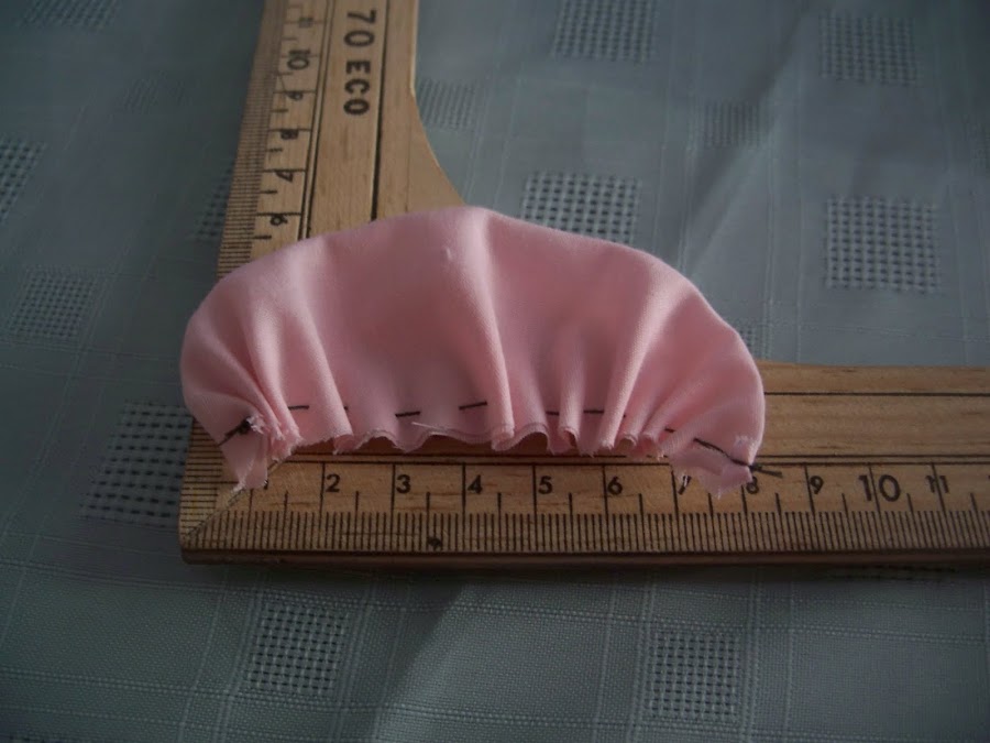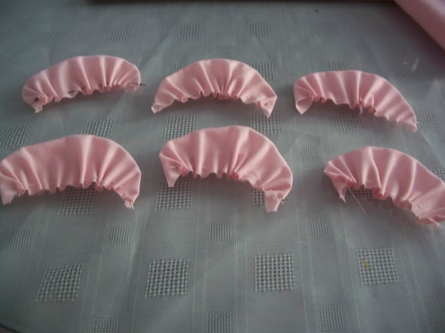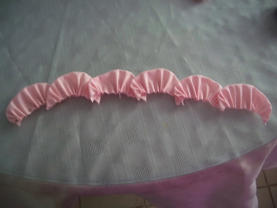 Se hilvana cada uno a lo largo, se jala para que quede aprox. de 8 cm. de largo
