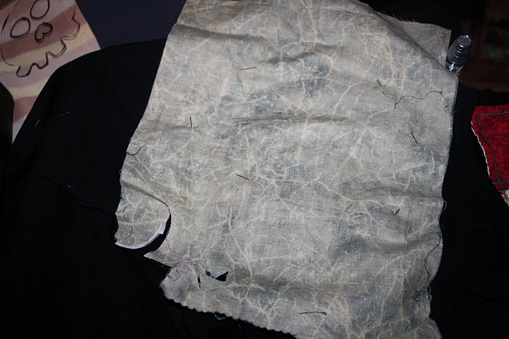 Damos la vuelta a la camiseta..........ponemos el retal detrás del patrón que tenemos dibujado,en la parte delantera. Estiramos bien la tela.