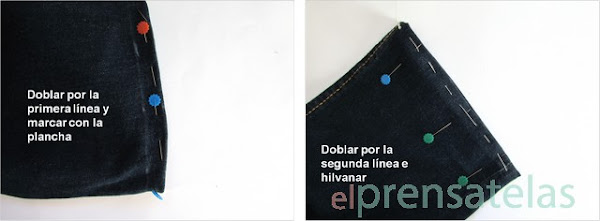Primero, marcar donde queremos el bajo, simpre probarlo con calzado que habitualmente usemos, no será lo mismo hacer un dobladillo si llevamos normalmente tacones o si vamos planas.