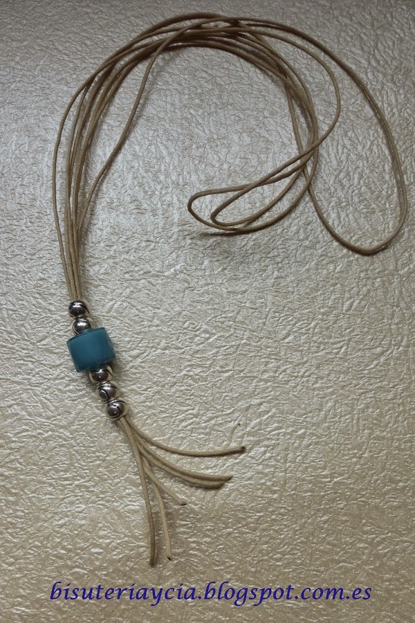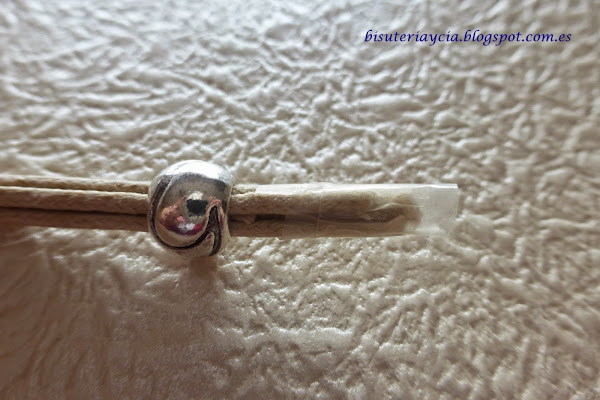 Una vez cortado los hilos, los he doblado por la mitad, de esta manera no hace falta ponerle cierre, he juntado las puntas y las he unido con un poco de cinta adhesiva.