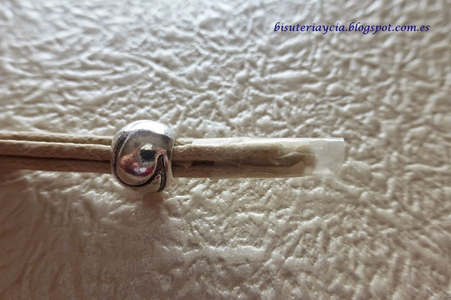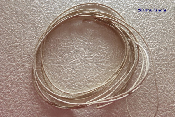 Lo primero que he hecho ha sido cortar 3 tiras de cordón encerado, de unos 1,50 cm. podéis cortar mas tira se hilos, yo he hecho tres porque son las que he podido hacer con el cordón que me quedaba.