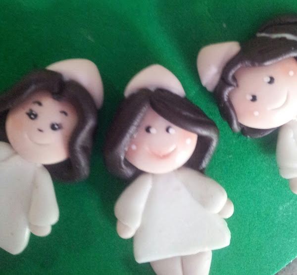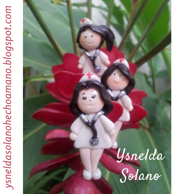Son tres figuras que se diferencian en su peinado y su carita, el resto todas tienen vestidito blanco y accesorios propios de una enfermera. Con ellas participo en el Reto Nro 92, organizado este mes por Myriam del blog Ideado a Mano: "El escaparate de mis pequeñas creaciones"