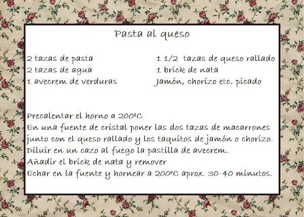 Una de mis favoritas. No podría vivir sin ella y podría comer pasta con queso todos y cada uno de los días de la semana.... quizás no me convenga, quizás sea lo mejor para el alma.....