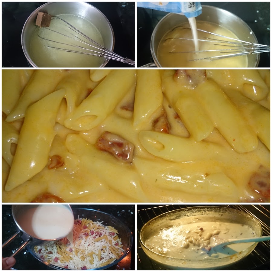 Echar sobre los macarrones y hornear a 200ºC aproximadamente 30-40 minutos.