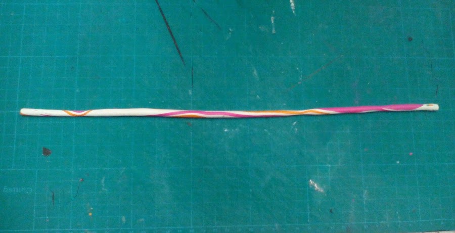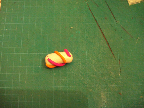 2. Cortamos un trozo y modelamos hasta hacer un "churro" con cada color.