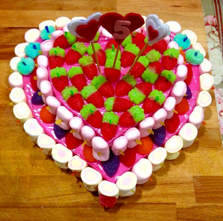 ¡Feliz año a tod@s! Hoy os traigo un pastel de chuches con forma de corazón, pero no es sólo un pastelito de gominolas, no, si no que he conseguido fusionar mis dos pasiones en una sola cosa; las manualidades y la repostería. Ahora veréis por qué.