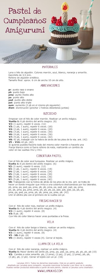 Here you have the pattern of the Amigurumi Birthday Cake in English. Happy crocheting!