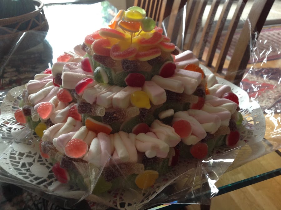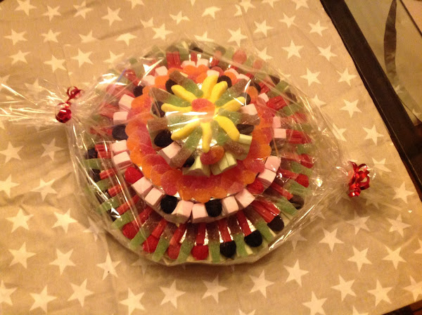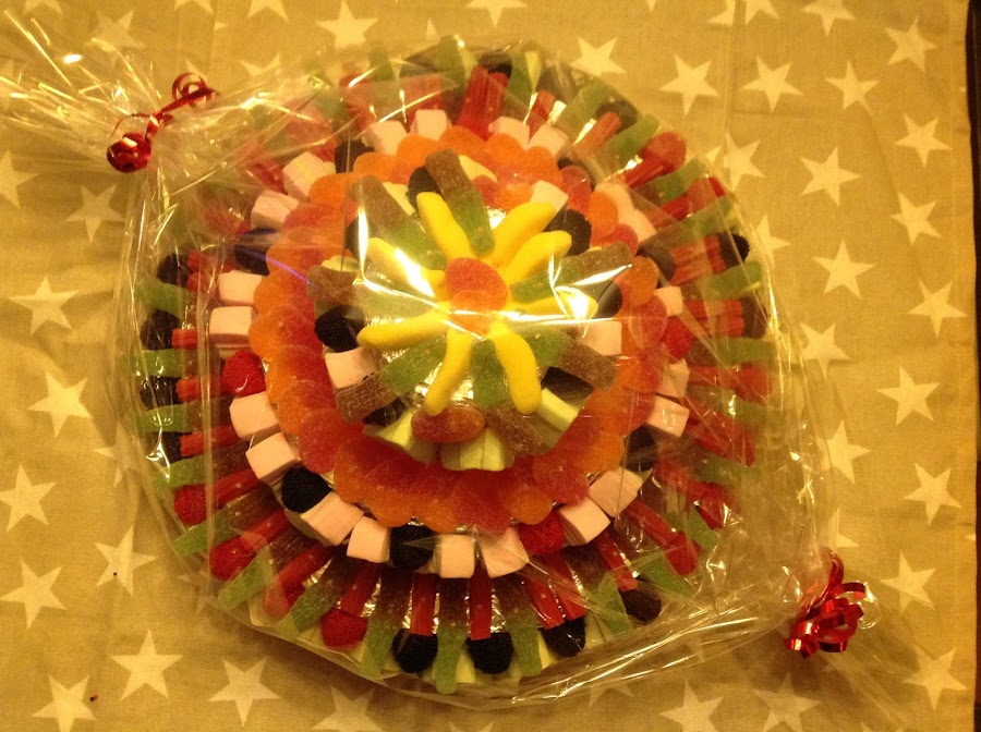 Os haceís con unas bolsas de chuches de diferenctes formas y colores para que sea más llamativo y con palillos los vamos pinchando.