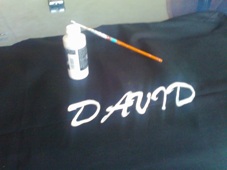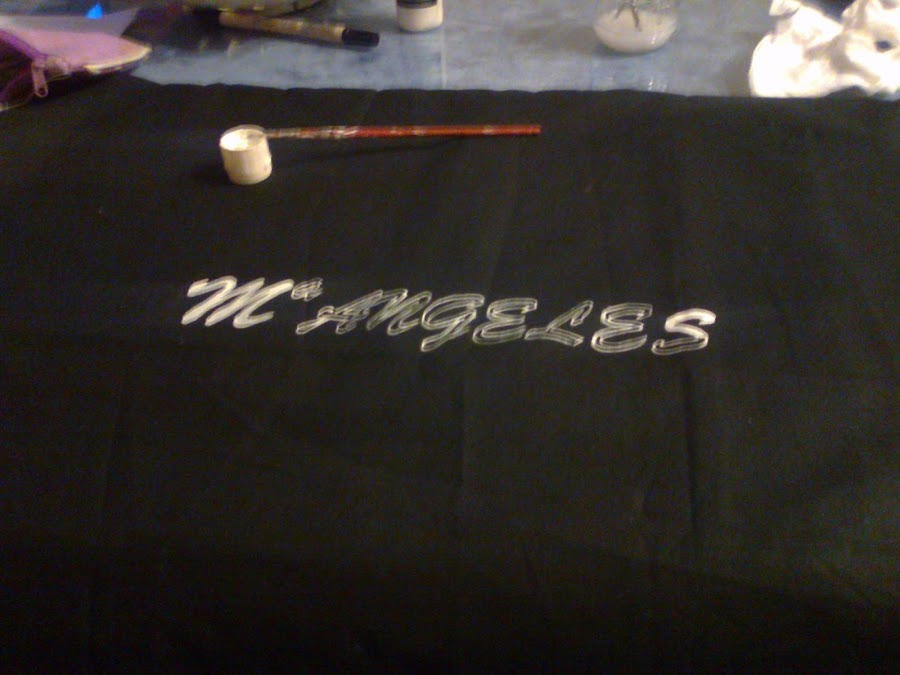 3º paso: Rellenar las letras con un pincel más grueso, también podéis utilizar rotuladores de tela.