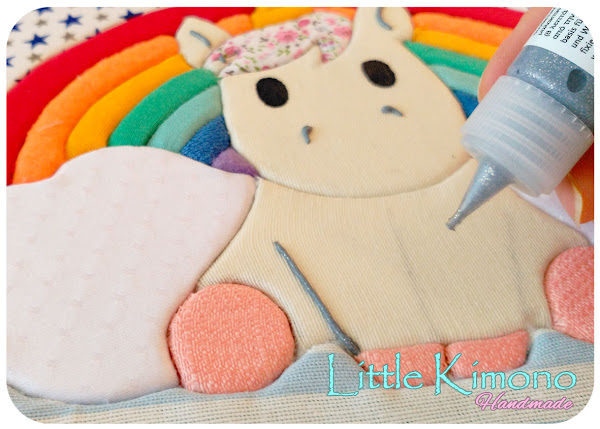 Por fin pude usar una pintura para tela con purpurina que quería usar desde hace tiempo para hacerle unos corazoncitos en las patitas a mi unicornio y me gustó un montón porque la purpurina una vez seca la pintura de va hacia los bordes ^^ me gustó mucho el efecto.