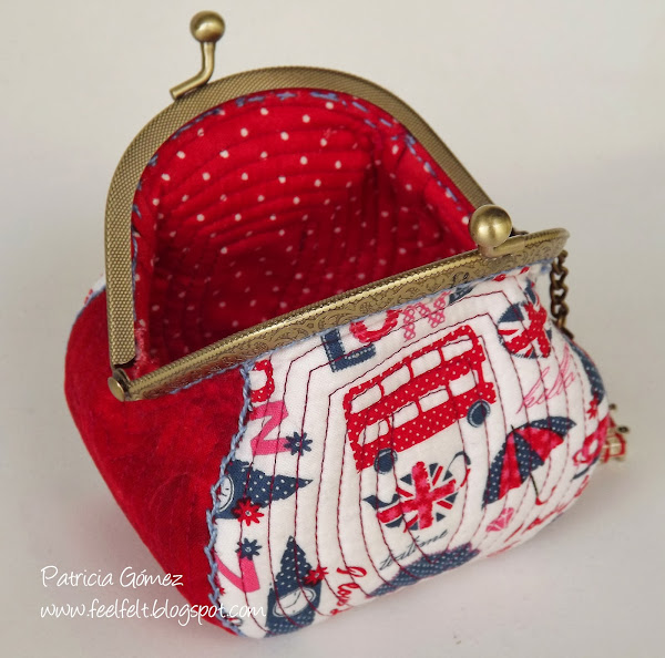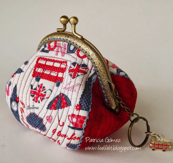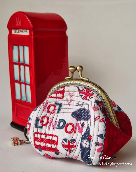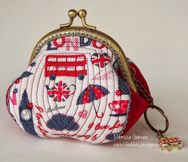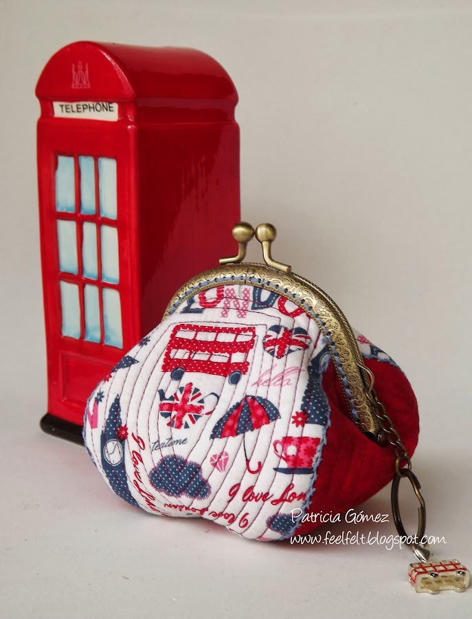 Aquí os muestro uno de los primeros que he hecho, un monedero, con unas telas con motivos londinenses que tenía muchas ganas de estrenar. (que vicio esto de las telas también, casi tanto como los sellos, jeje)