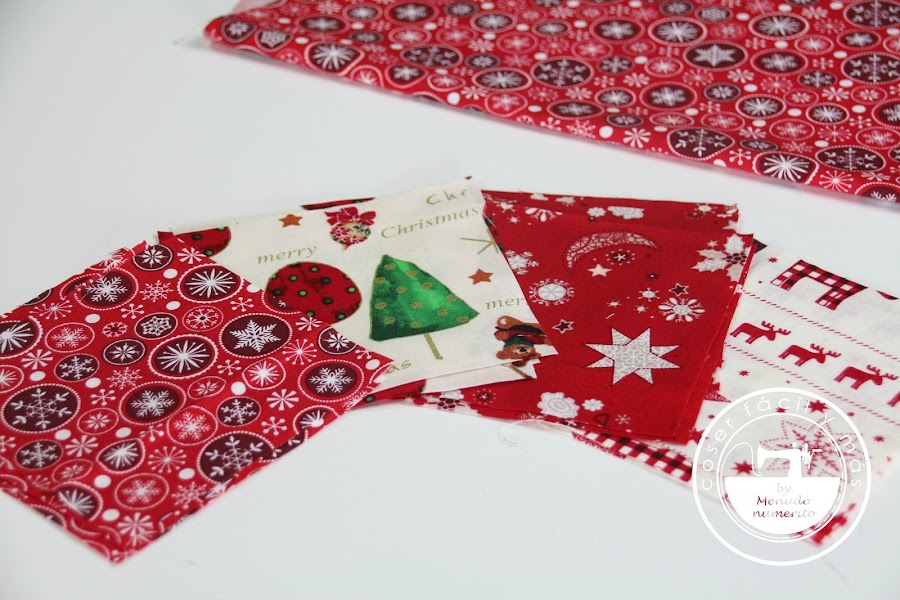 16 piezas de 4 telas distintas, estampadas con motivos navideños de 12 cm x 12 cm