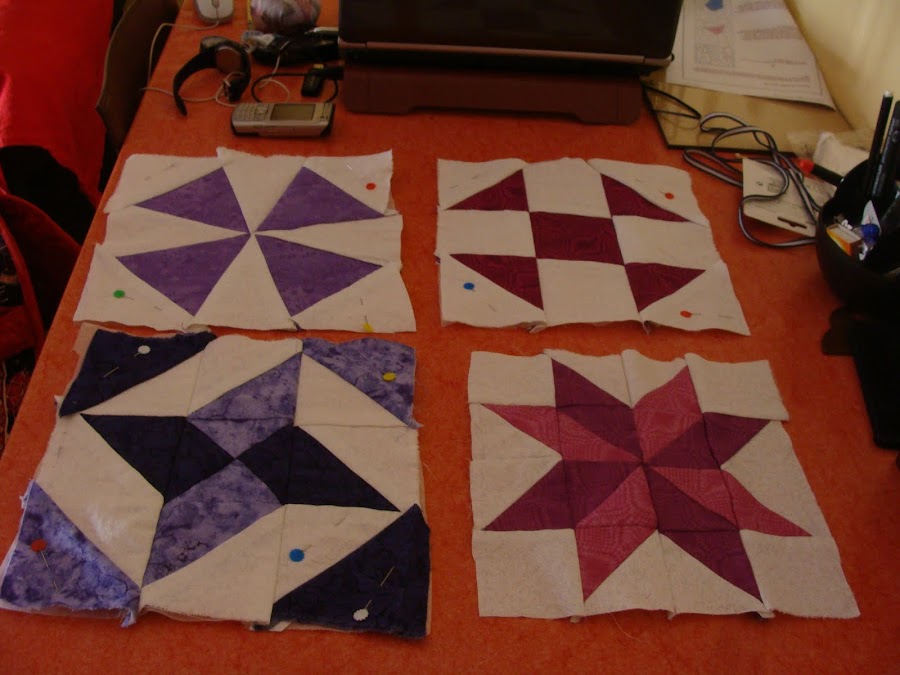 Primero fueron los cojines, después el bolso de costura y ahora estoy haciendo bloques ya que quiero hacerke una colcha para mi madre ;)