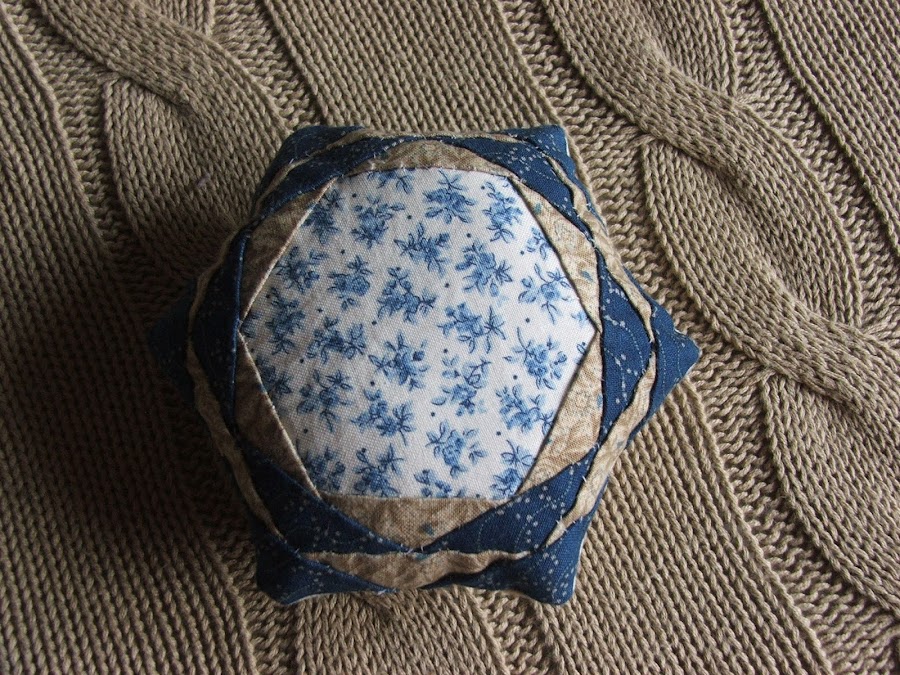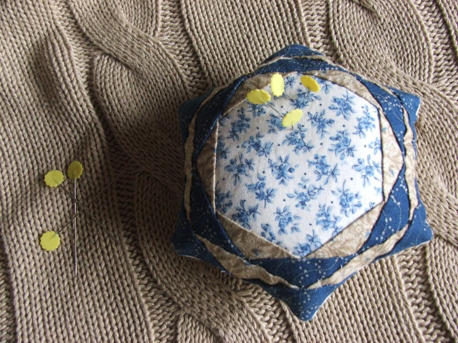 There are different patchwork techniques. In the workshop that I went to, we were taught geometric patcwhork. And with a pattern that they gave us, we made this beatiful pincushion! (You can see the pictures above!) What do you think of it?