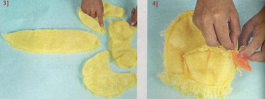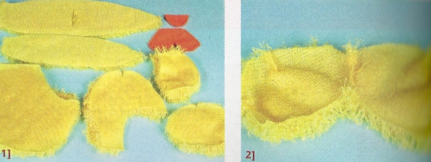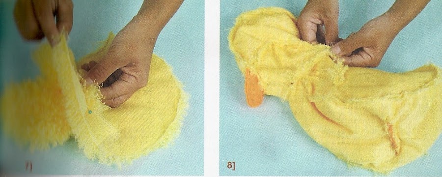 Cortar las piezas del patito según los moldes, dejando medio centímetro para costura. Cerrar las pinzas.