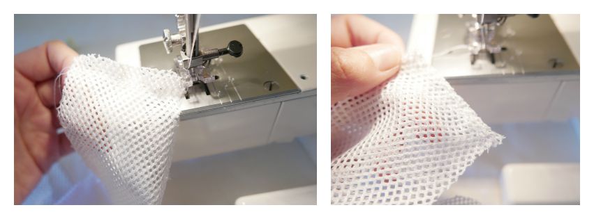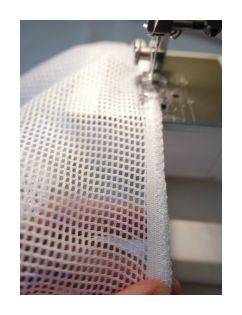 Para el forro usaremos un tejido de rejilla, por su secado rápido muy usado en prendas deportivas y más o menos un metro de goma de caucho virgen. Con estos materiales nos podemos poner a coserlo, ya veréis que es muy fácil.