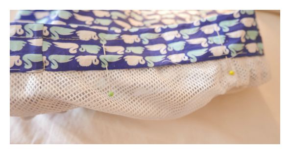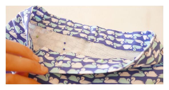 Unir el forro a la cintura del bañador sólo es cuestión de ir colocándolo, bajo ésta con un hilván.