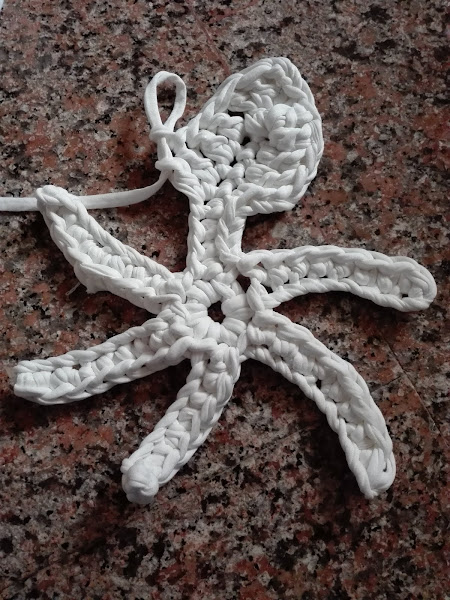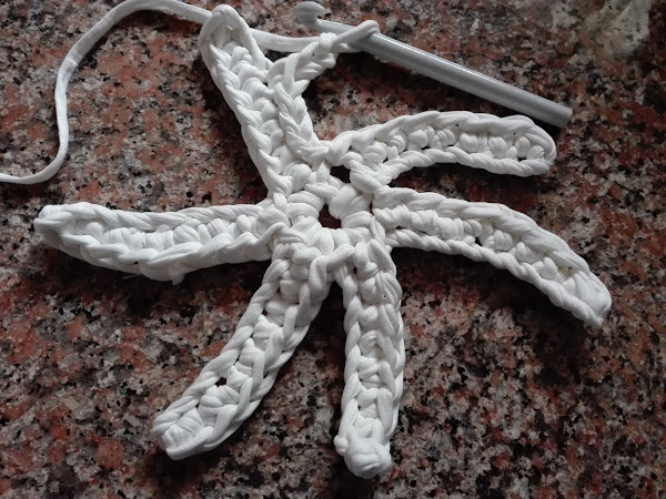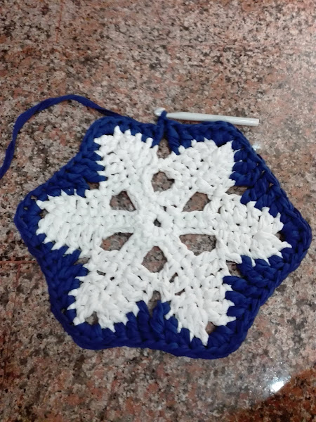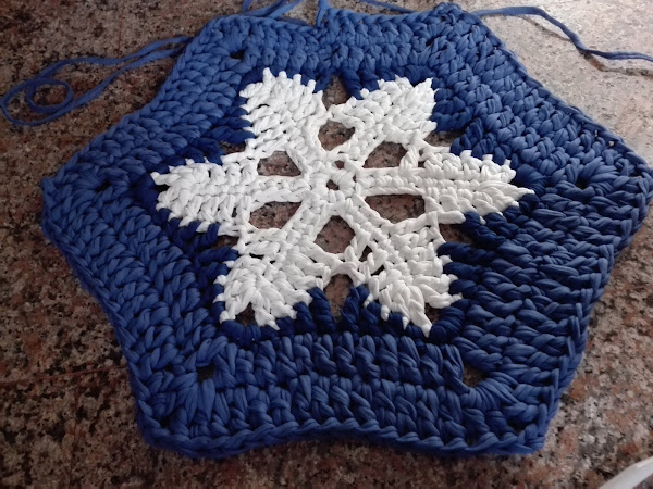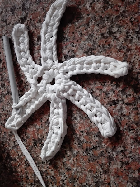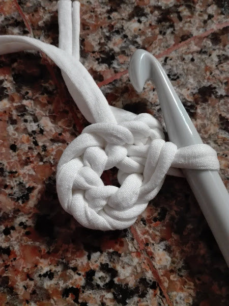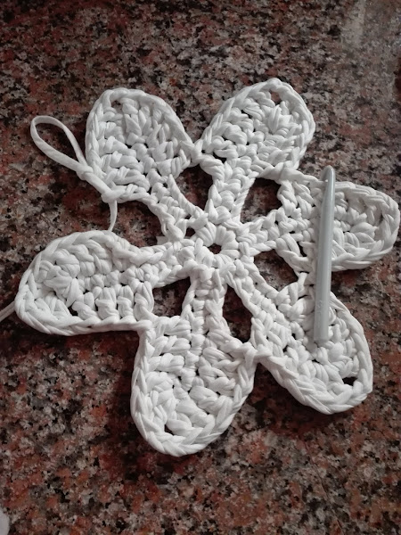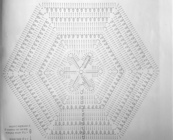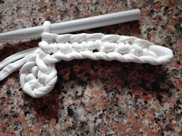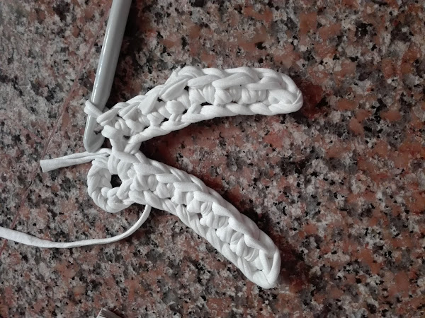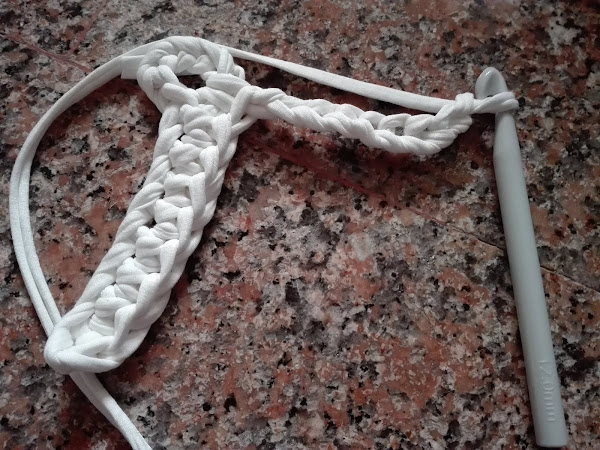 El patrón que he utilizado ha sido el siguiente, no lo llevé hasta el final y tampoco realicé el mismo número de puntos ya que, como expliqué en la publicación "cómo utilizar el trapillo", según el grosor que tenga éste a diferencia con el patrón del esquema va a quedar o "volada" o rizada, por lo tanto, debemos adaptarlo a nuestro trapillo.