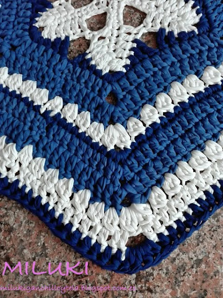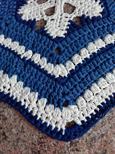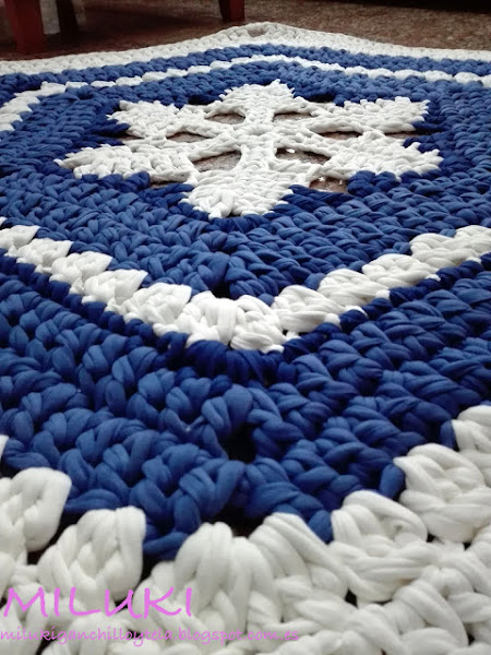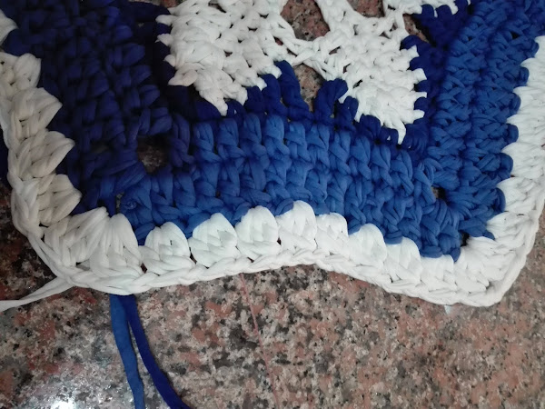 Hoy me gustaría compartir con ustedes uno de los últimos trabajos que he realizado. Esta alfombra la tejí con colores fríos, estos tonos azules hacen que te sientas tranquila y relajada, junto al blanco dan sensación de frescura por lo tanto, la utilizaría para un lugar cerca del mar.