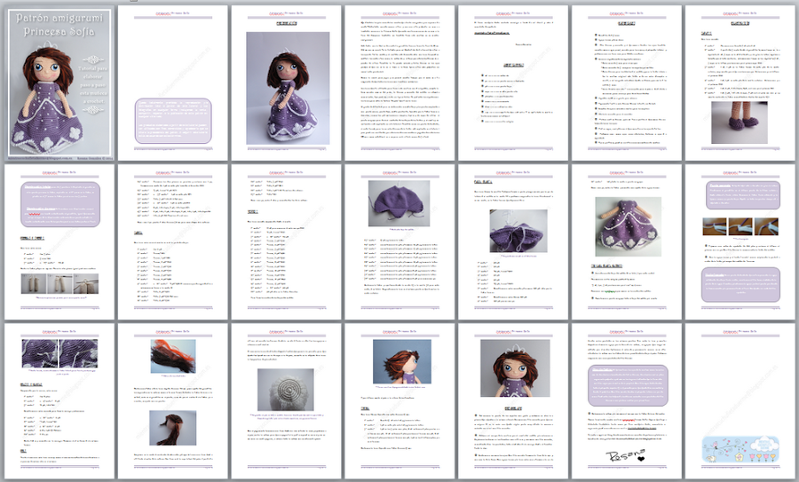 El patrón se presenta en una mini-guía en PDF con fotos que te servirán de referencia durante la elaboración de la muñeca. Si necesitas algún dato más no dudes en preguntarme.Puedes conseguir el patrón aquí, o si quieres una muñeca amigurumi Princesa Sofía mándame un mail a mamichufleta@gmail.com